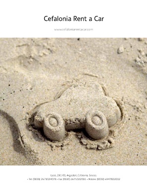 Cefalonia Rent a Car www.cefaloniarentacar.com Lassi, 281 00, Argostoli, Cefalonia, Greece. • Tel: (0030) 2671024078 • Fax (0030) 2671022001 • Mobile: (0030) 6947822032 car_rental_ADfinal.indd 217 4/6/2019 4:19:23 µµ