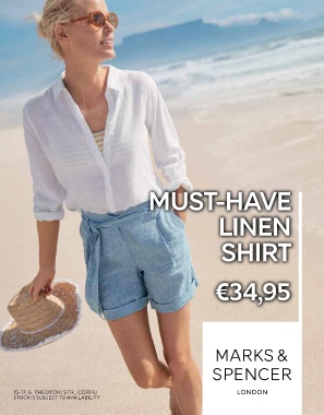 MUST-HAVE LINEN SHIRT AKTION, CORFU, KEFALONIA & ZAKYNTHOS €34,95 15-17, G. THEOTOKI STR., CORFU STOCK IS SUBJECT TO AVAILABILITY SUM19_180x230_GREC14N_CORFU.indd 1 23/05/2019 12:33
