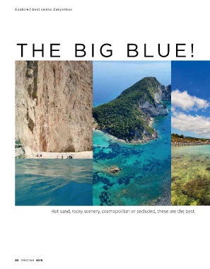 Explore | Best swims Zakynthos TH E B I G B LU E! Hot sand, rocky scenery, cosmopolitan or secluded, these are the best 80 GREC14N 2019